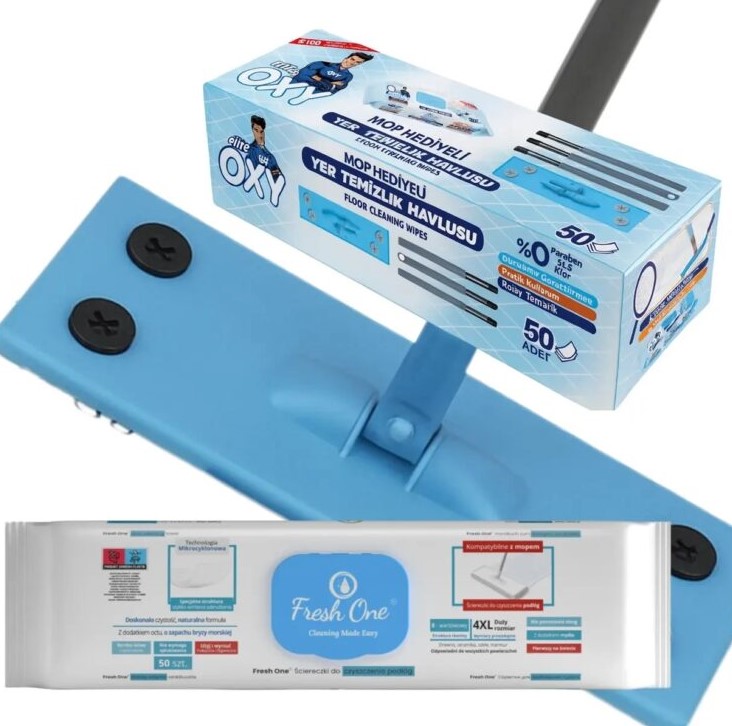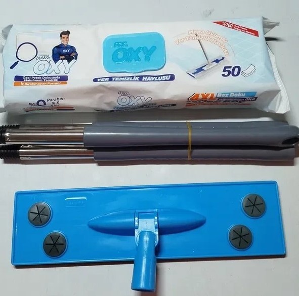 ست تی دسته دار و دستمال مرطوب تی مستر اوکسی Mr.Oxy تمیزی آسان و سریع کف (50 عددی)